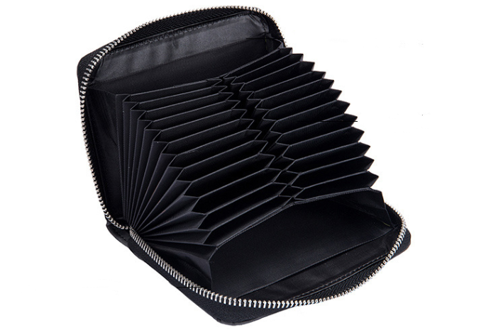 Internal structure: banknote clip, change position, document position, card position, passport position