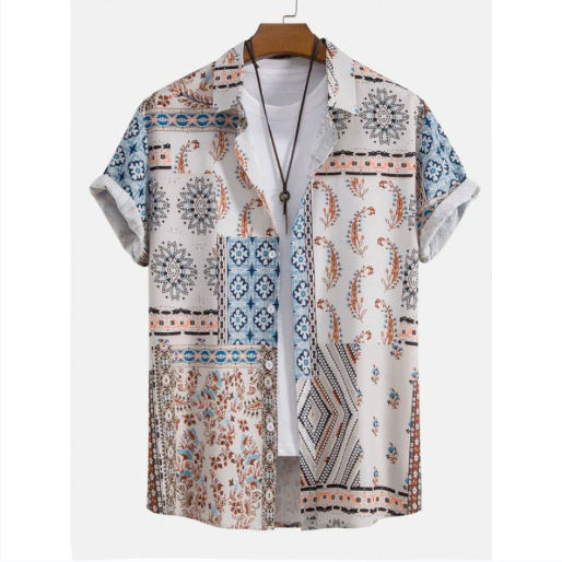 Men's Cardigan Casual Suit 3D Digital Printing Short Sleeve