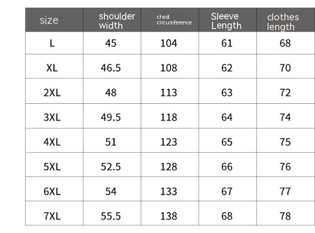 Size: L,XL,2XL,3XL,4XL,5XL,6XL,7XL