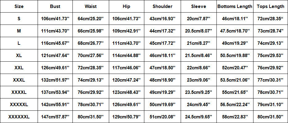 Sizes: S, M, L, XL, 2XL, 3XL, 4XL, 5XL, 6XL