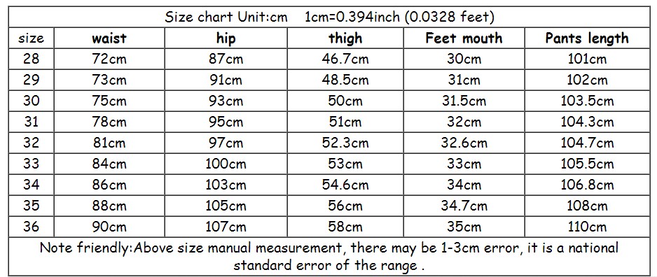 Size: 27 (2.08 feet) 28 (2.16 feet) 29 (2.23 feet) 30 (2.31 feet) 31 (2.39 feet) 32 (2.46 feet) 33 (2.54 feet) 34 (2.62 feet) 35 (2.69 feet) 36 (2.77) ruler)