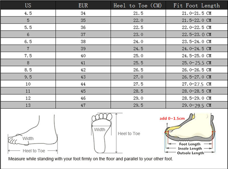 Sizes: 35, 36, 37, 38, 39, 40, 41, 42, 43, 44, 45, 46
