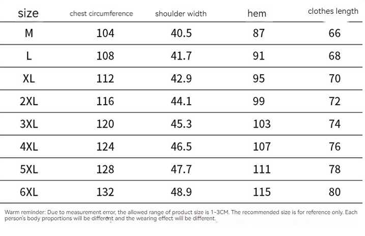 Size: M,L,XL,XXL,3XL,4XL,5XL,6XL