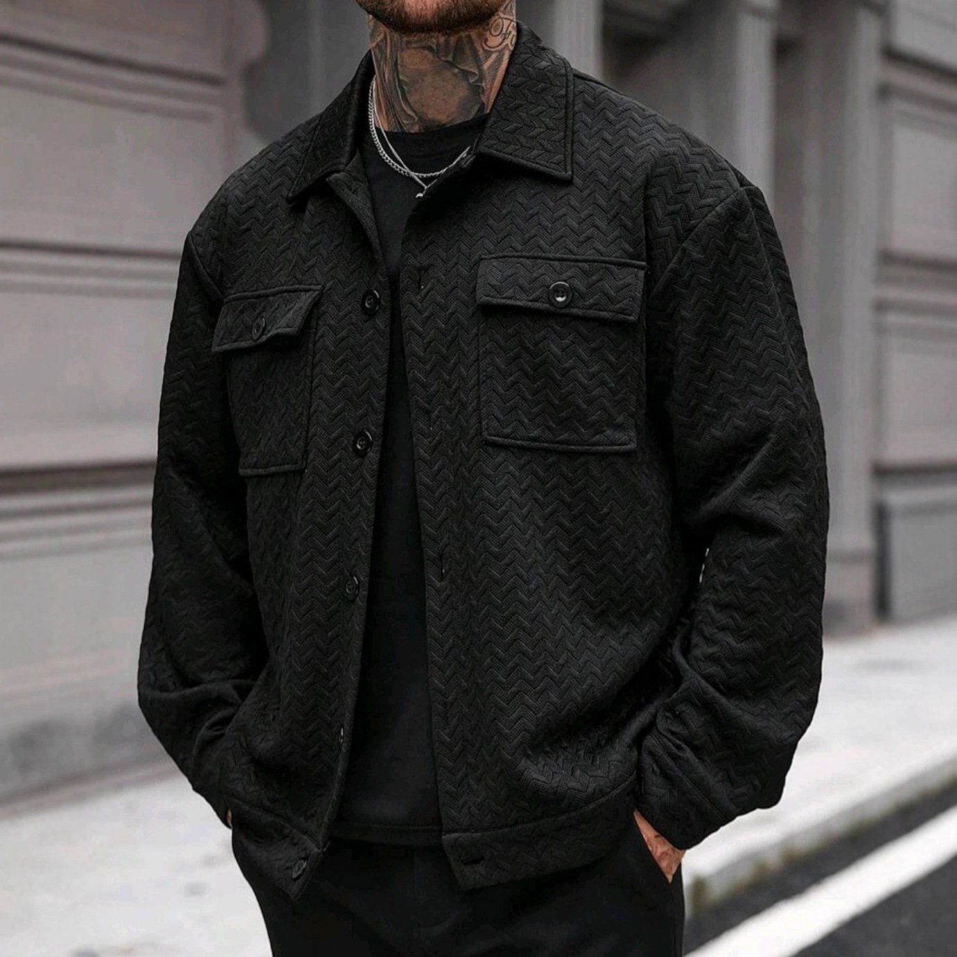 Men's Casual Jacquard Large-pocket Jacket