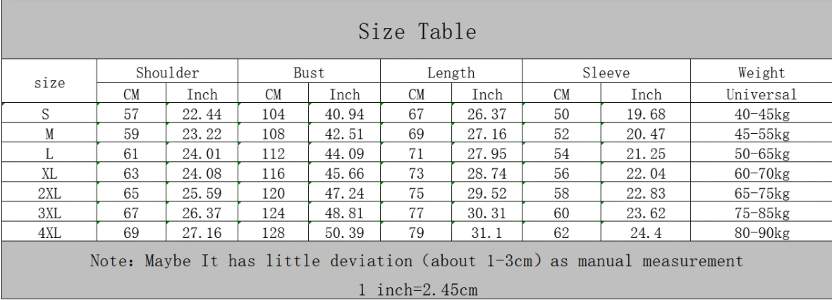 1. Asian sizes are 1 to 2 sizes smaller than European and American people. Choose the larger size if your size between two sizes. Please allow 2-3cm differences due to manual measurement. 2. Please check the size chart carefully before you buy the item, if you don't know how to choose size, please contact our customer service. 3.As you know, the different computers display colors differently, the color of the actual item may vary slightly from the following images.