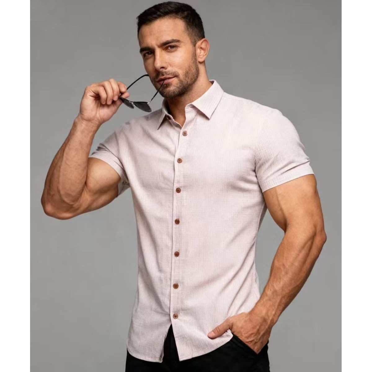 - ** Matching Formula ** : Waffle short-sleeved shirt + beige casual pants in the same color series + brown leather shoes/canvas shoes