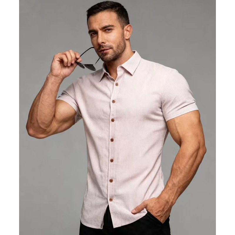 - ** Matching Formula ** : Waffle short-sleeved shirt (open) + white T-shirt (inner layer) + tight-fitting sports pants + sports shoes
