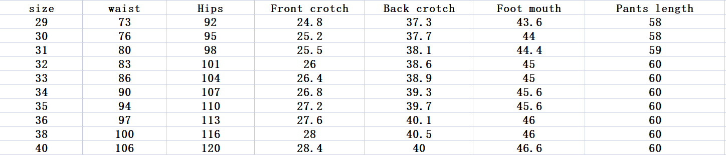 Sizes: 28, 29, 30, 31, 32, 33, 34, 35, 36, 38, 40