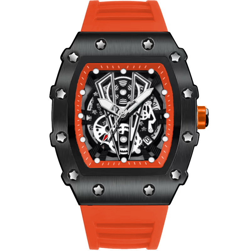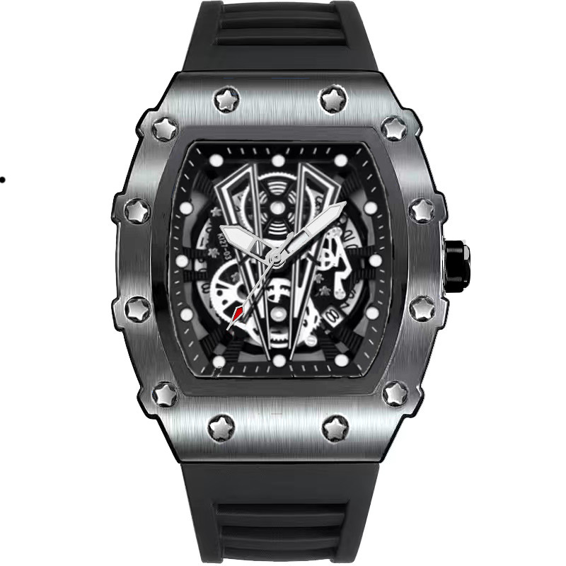 Mens Casual Sport Hollow Barrel-Shaped Quartz Watch