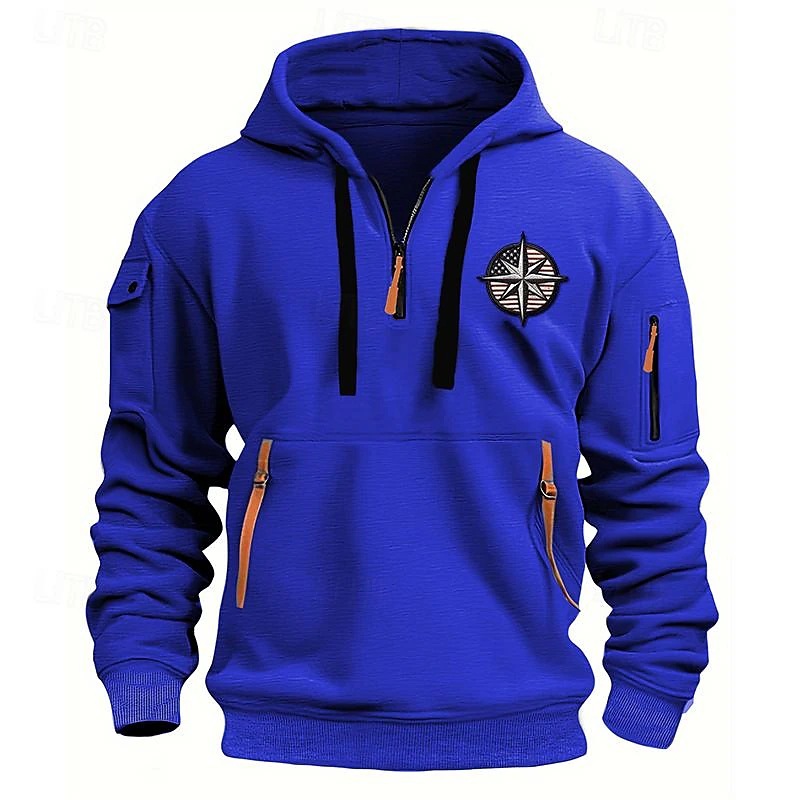 Men's Casual Sports Multi-zipper Arm Embroidery Badge Sweater