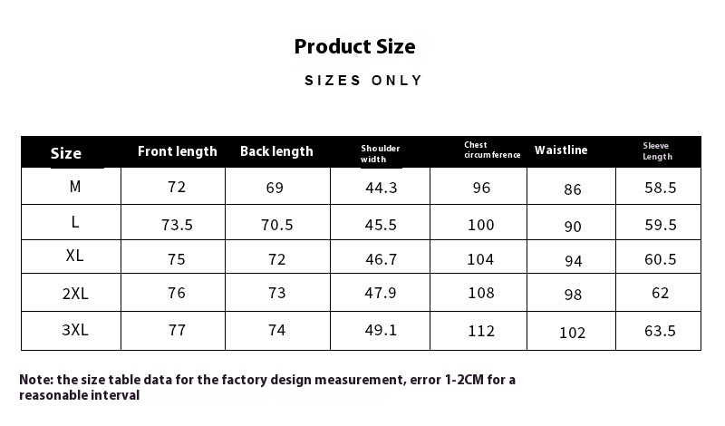 1. Asian sizes are 1 to 2 sizes smaller than European and American people. Choose the larger size if your size between two sizes. Please allow 2-3cm differences due to manual measurement. 2. Please check the size chart carefully before you buy the item, if you don't know how to choose size, please contact our customer service. 3.As you know, the different computers display colors differently, the color of the actual item may vary slightly from the following images.
