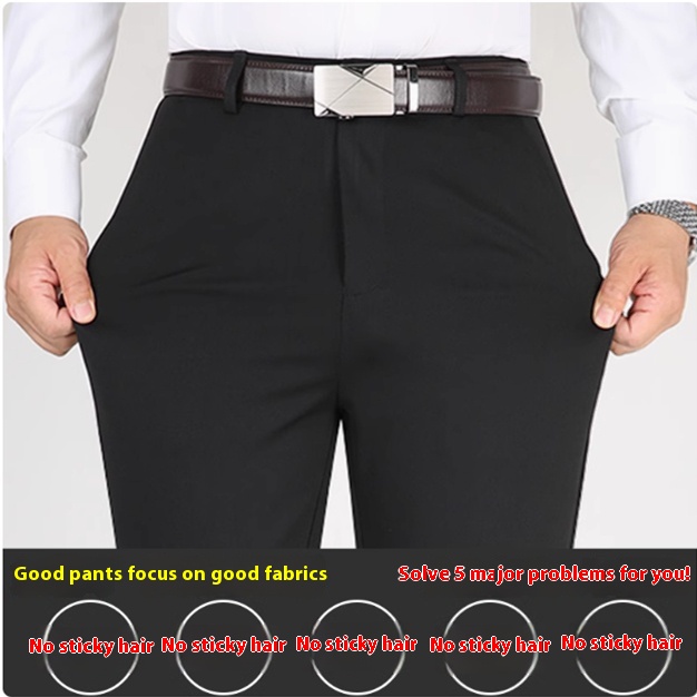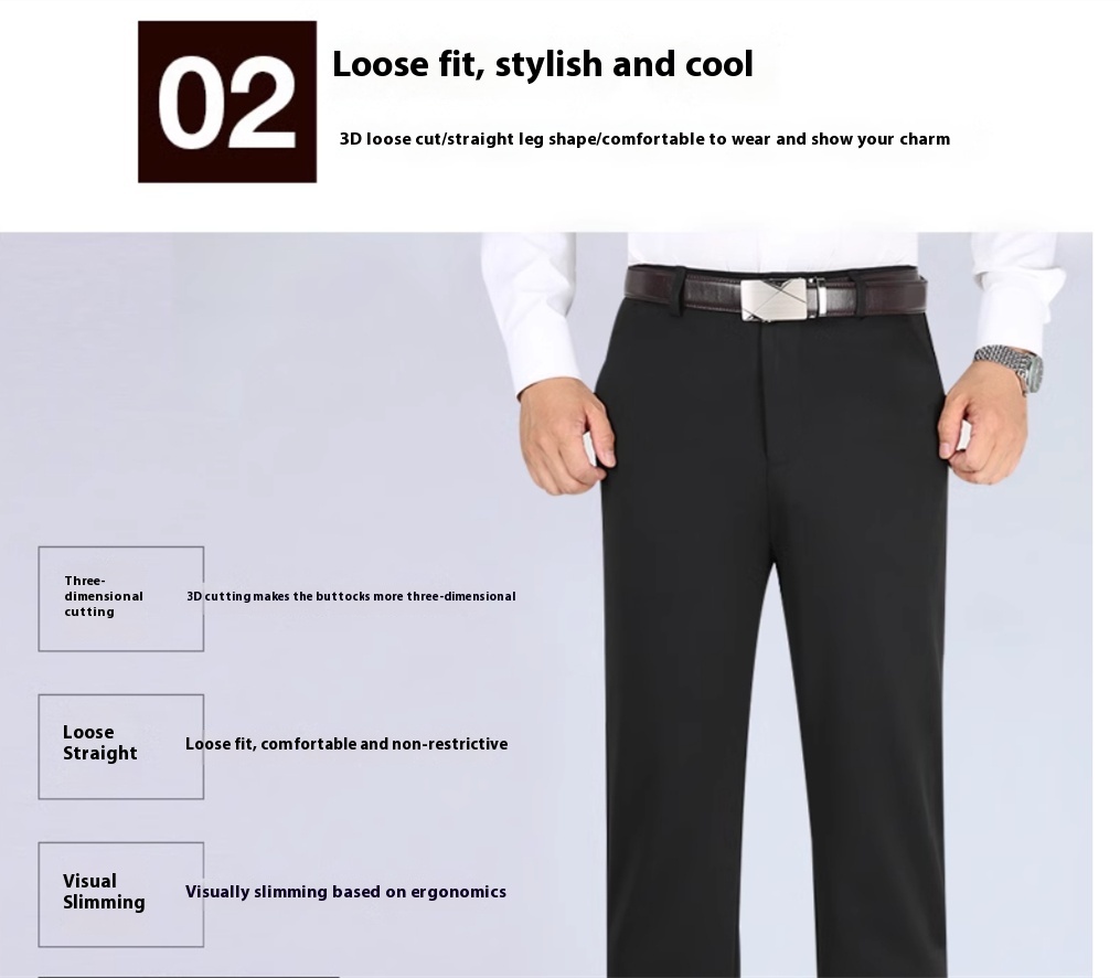 Men's Casual Trousers Elastic Non-ironing Loose Straight Suit Pants