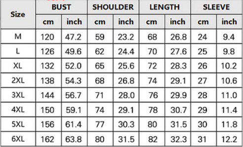 Sizes: S, M, L, XL, XXL, XXXL, 4XL, 5XL, 6XL