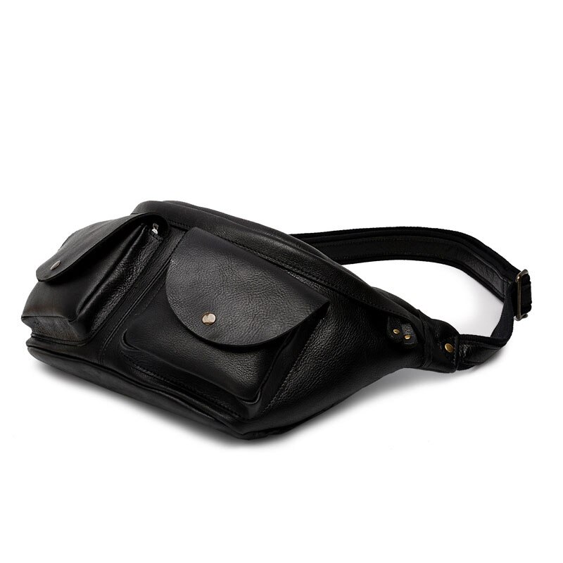 Men's Chest Bag Leather Belt Bag Retro First Layer Leather Crossbody Bag