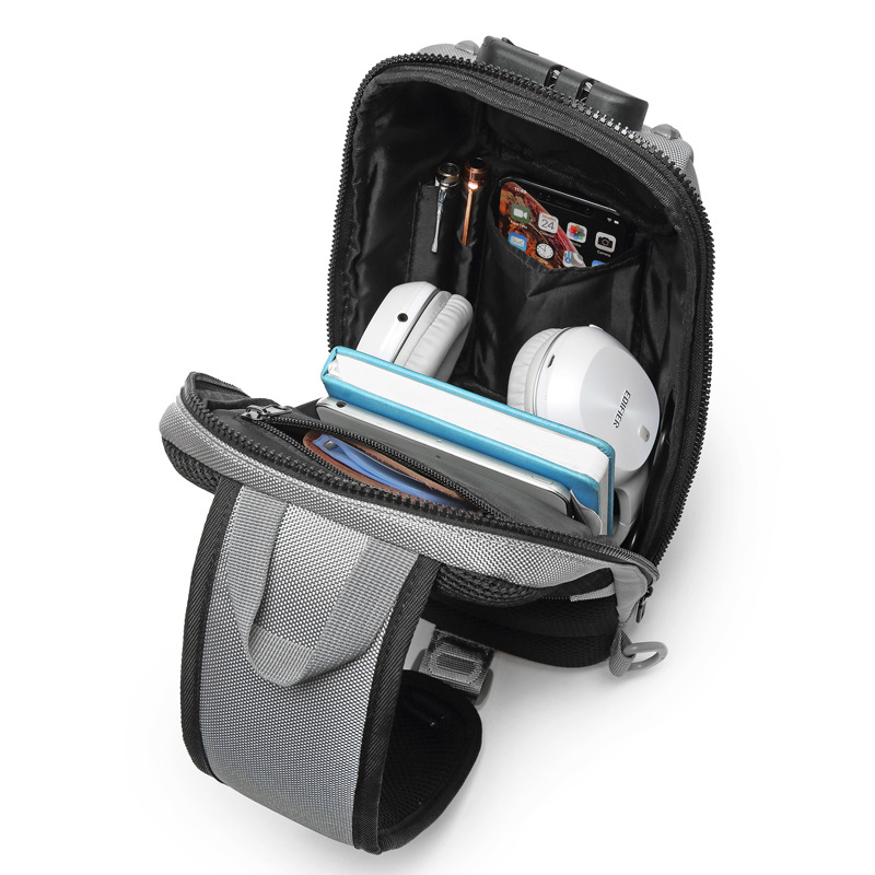 The internal structure of the bag: zipper pocket, mobile phone bag, document bag