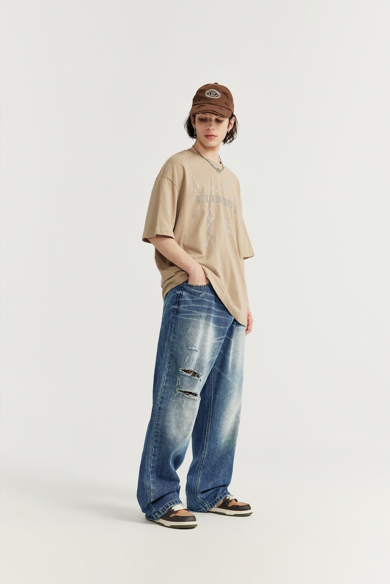 Men's Clothing Wide Leg New Washed-out Vintage Straight-leg Denim Trousers