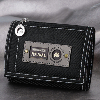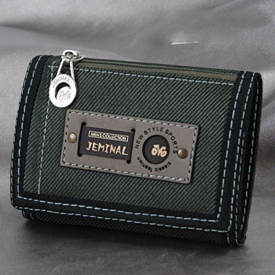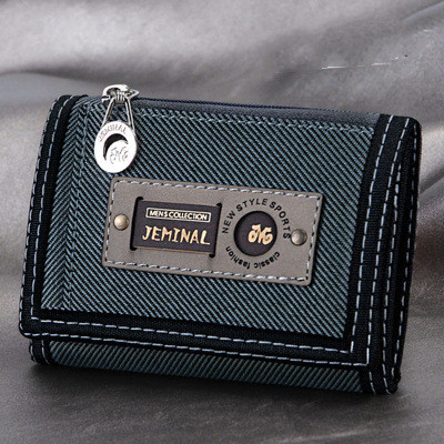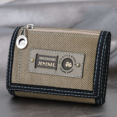 Packing: Men's contrast color casual canvas 3 fold short wallet x1
