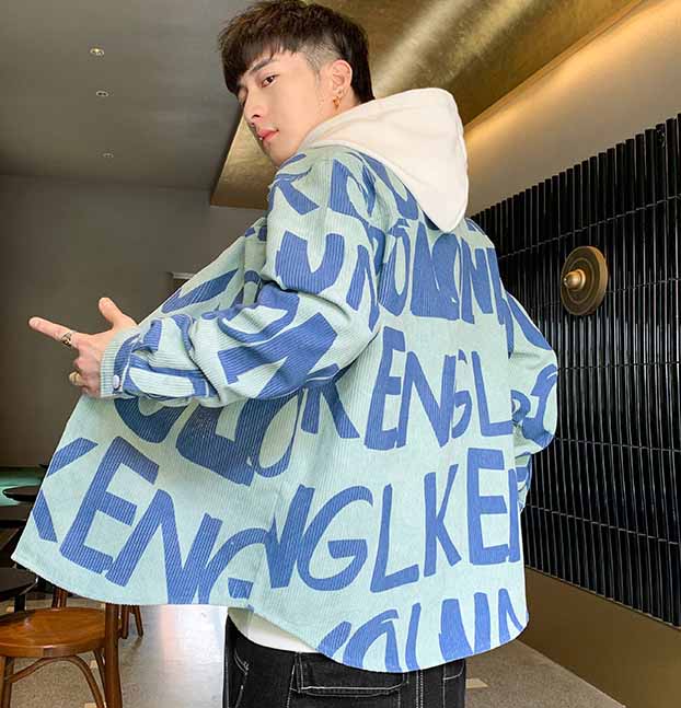 Men's Corduroy Printed Long-sleeved Shirt Jacket