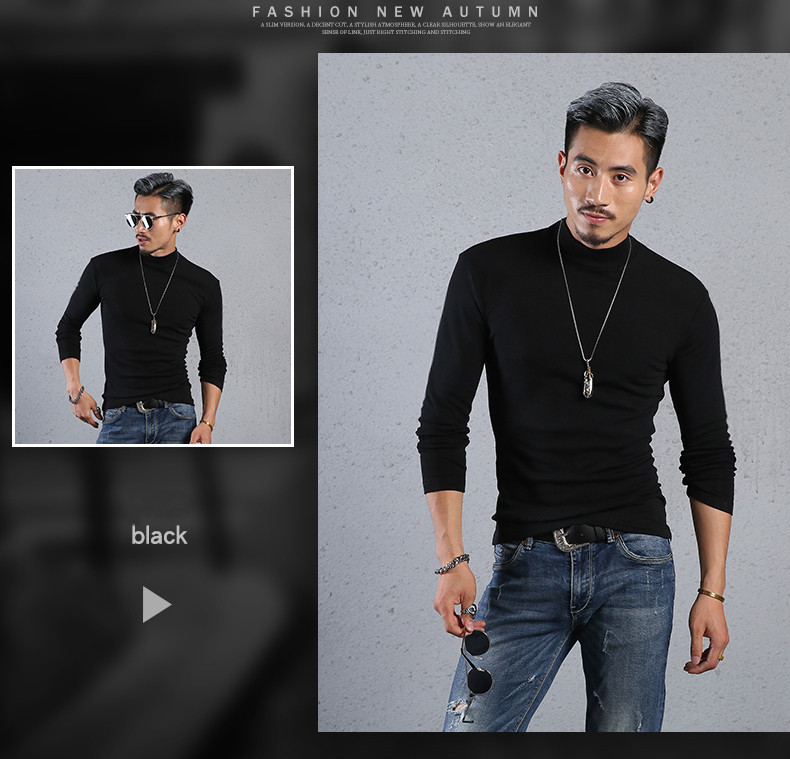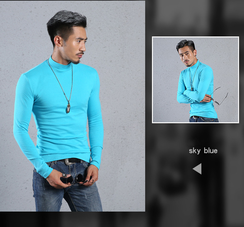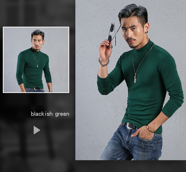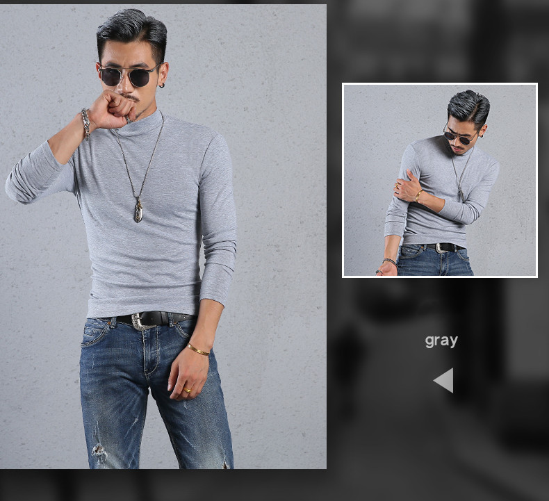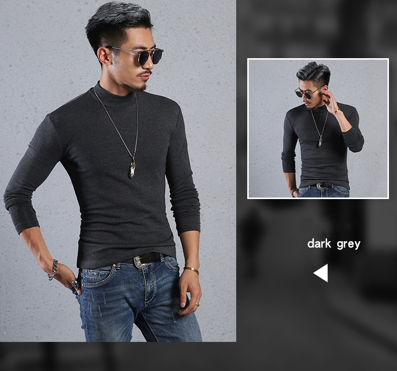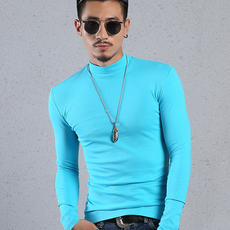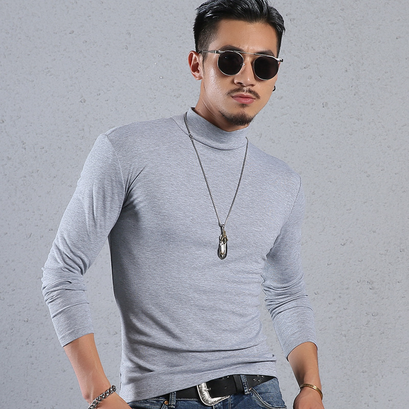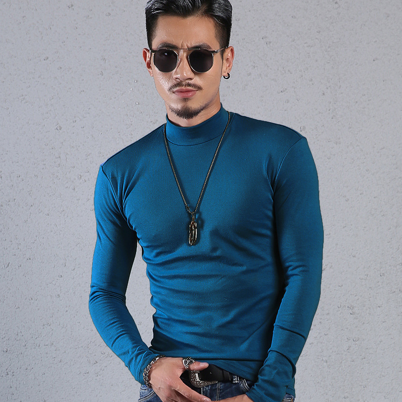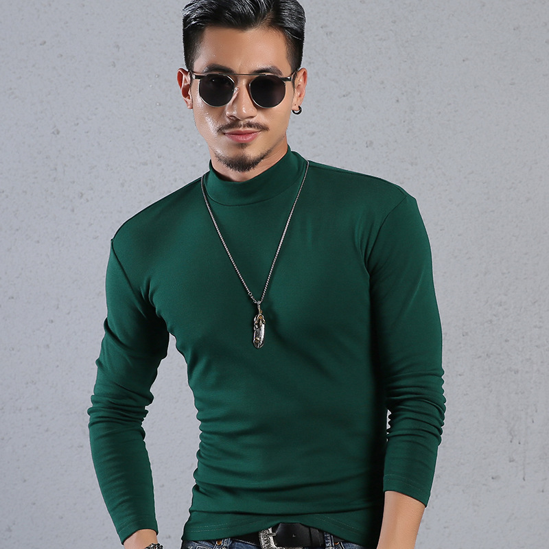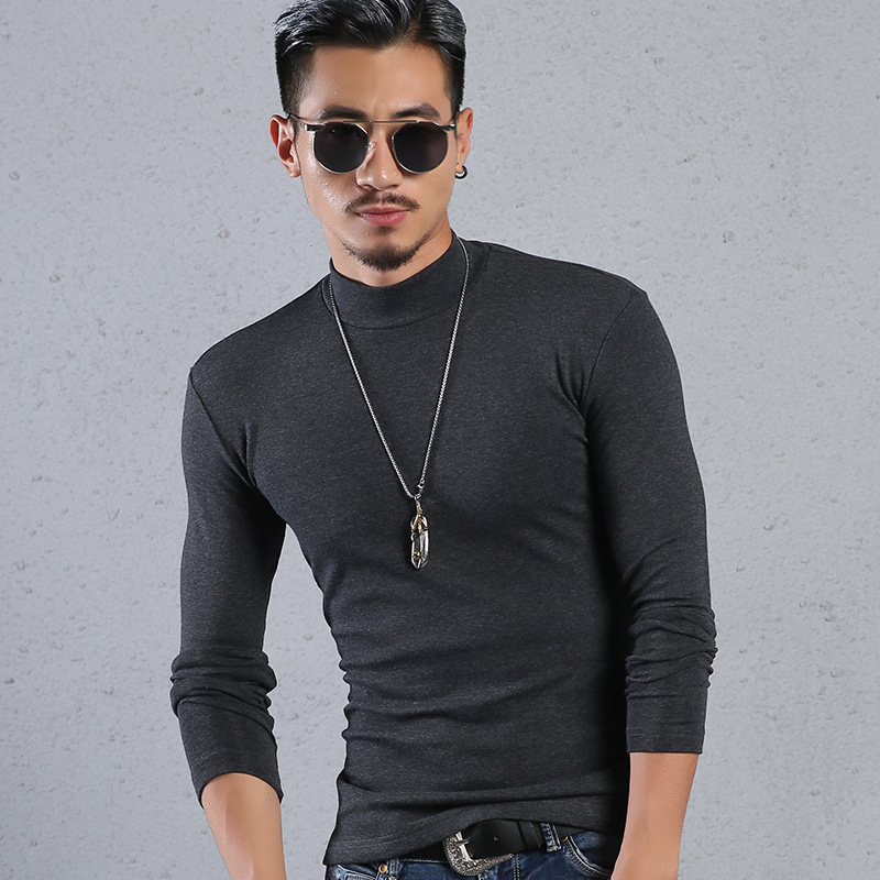 Men'S Cotton Half-High Collar Bottoming Shirt Slim Solid Color Tight-Fitting Mid-Neck Long Sleeves