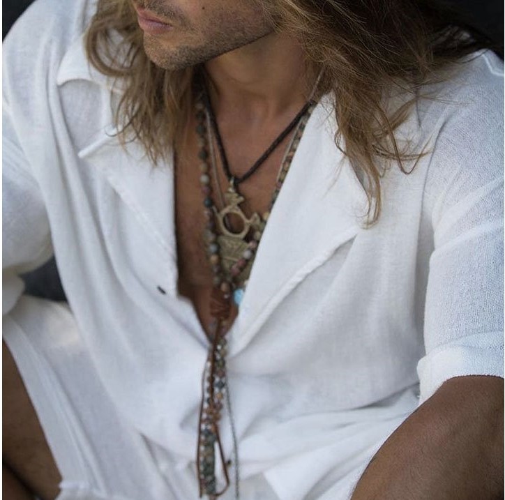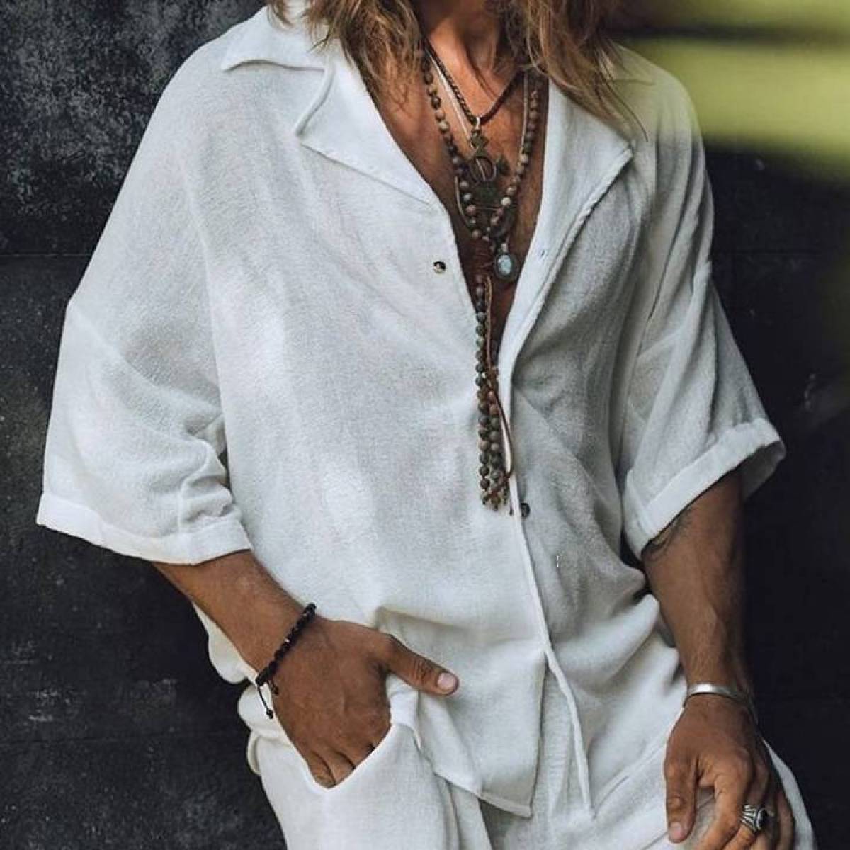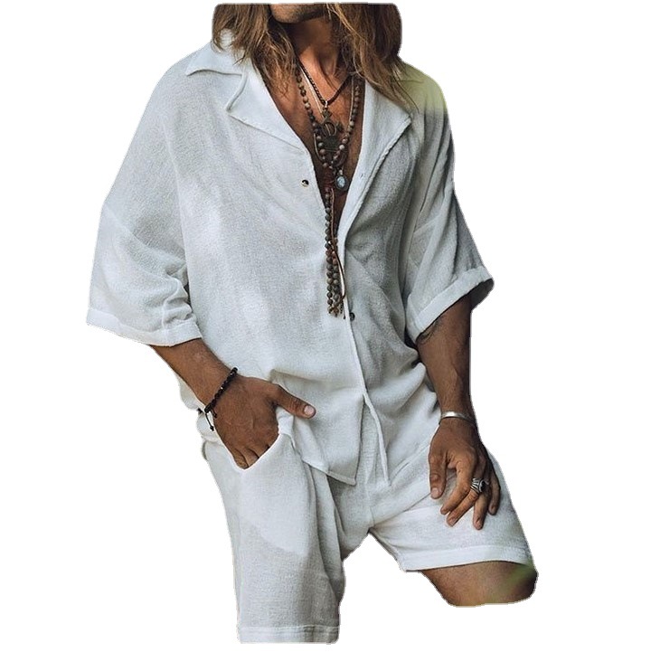 Men's Cotton Linen Casual Pocket Mid Sleeve Beach T-Shirt Shirt