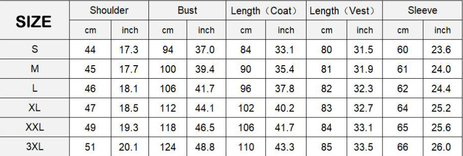 Jacket*1+Pants*1+Vest*1