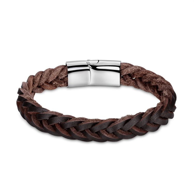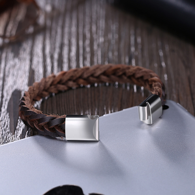 Men's Cowhide Bracelet Titanium Steel Magnetic Buckle Patent Design Woven Bracelet Denim Bracelet