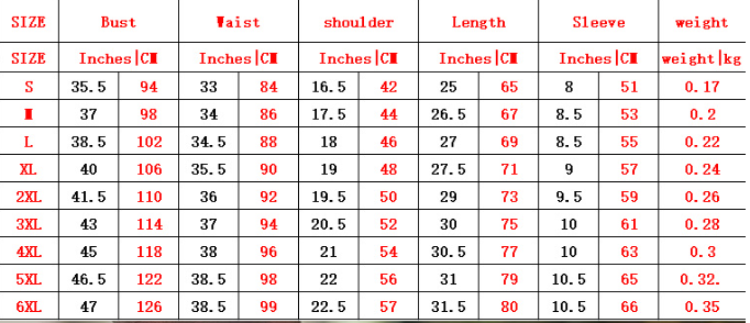 Size: S, M, L, XL, XXL, XXXL, XXXXL, XXXXL, 5XL, 6XL