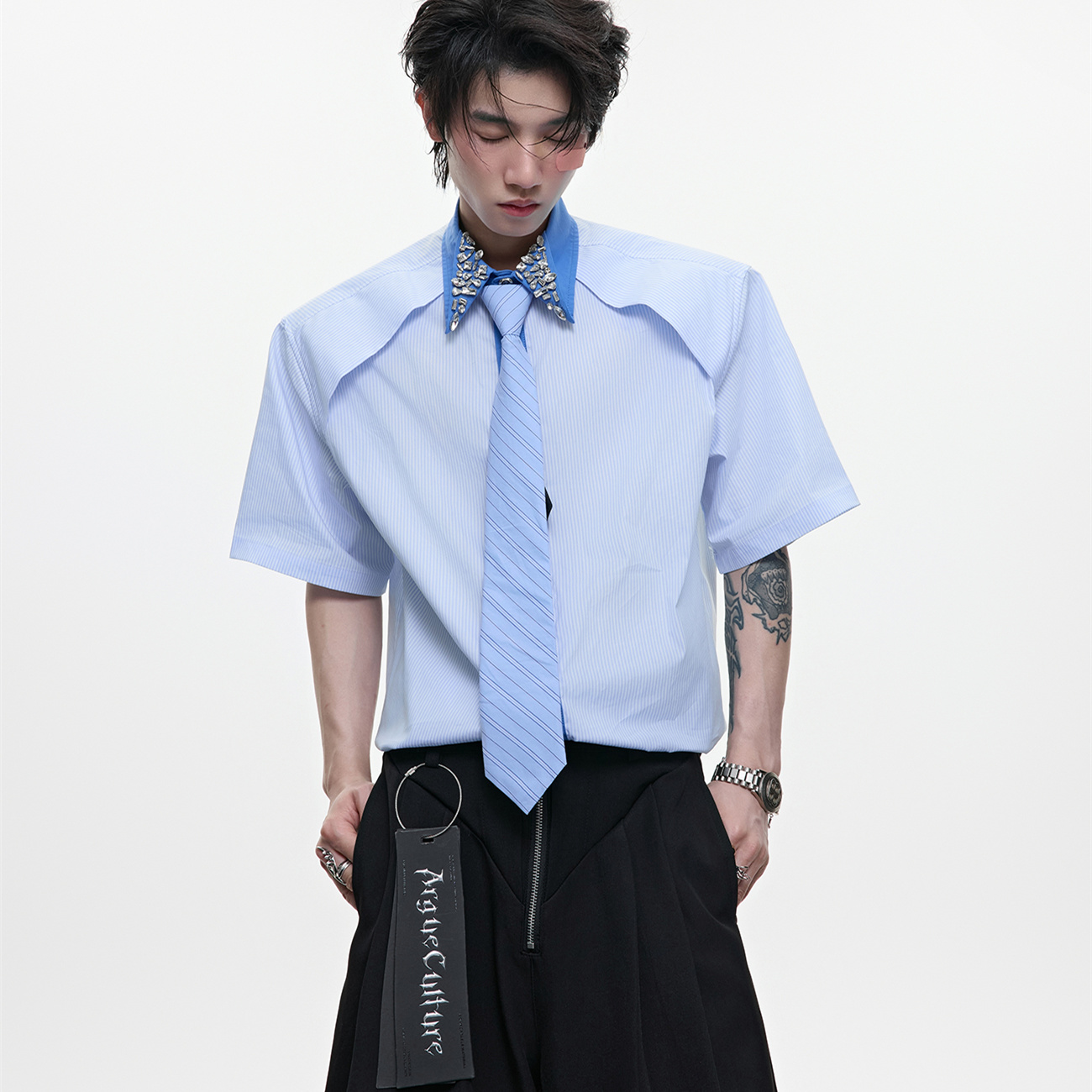 Men's Diamond Tie Dual-color Patchwork Striped Shirt