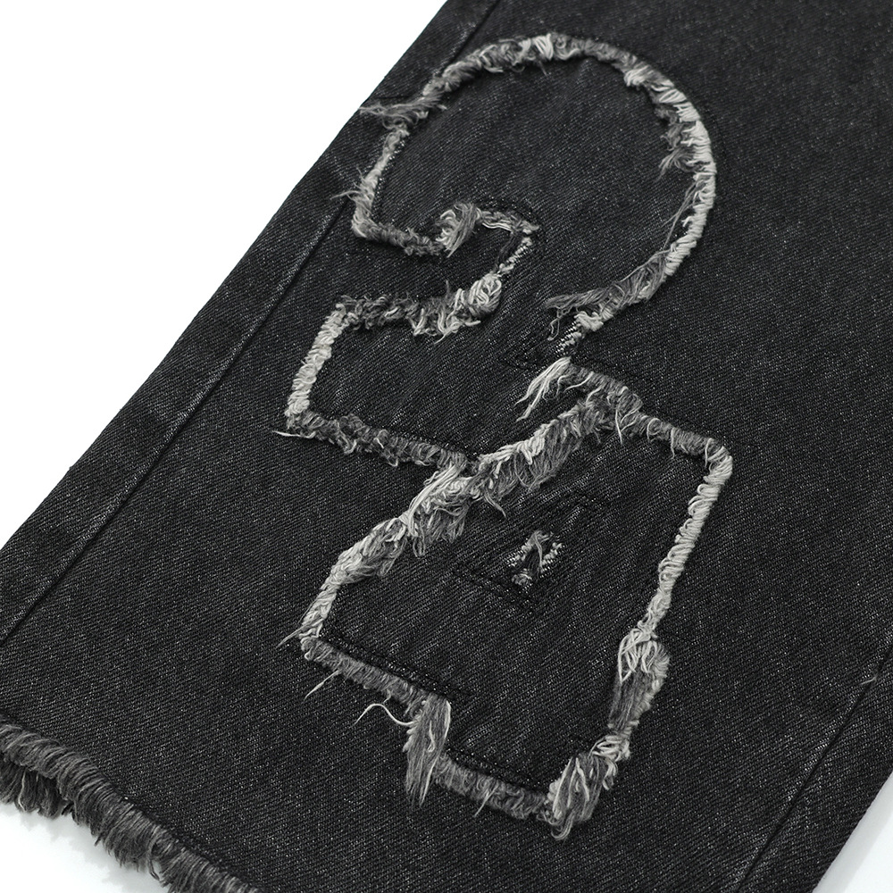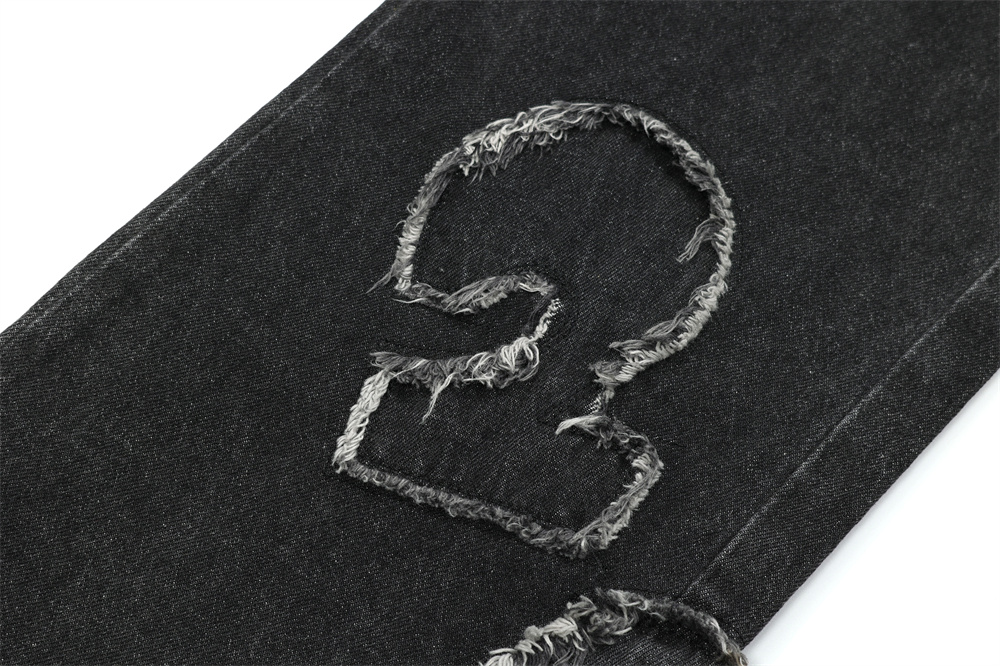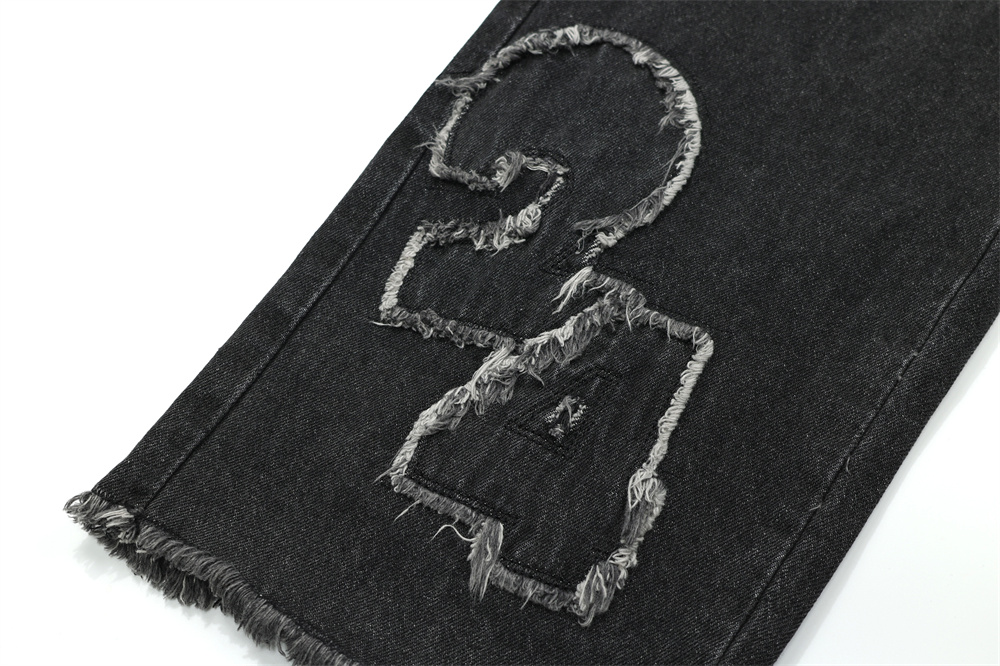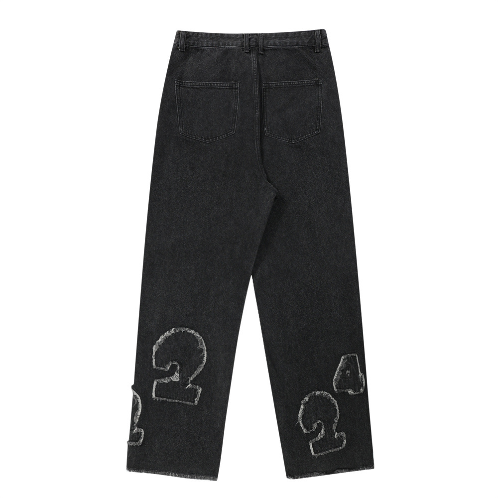 Men's Digital Cat Beard Affixed Cloth Embroidered Washed Jeans