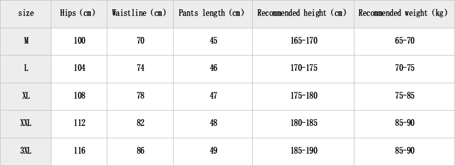 Size; M, L, XL, XXL, XXXL