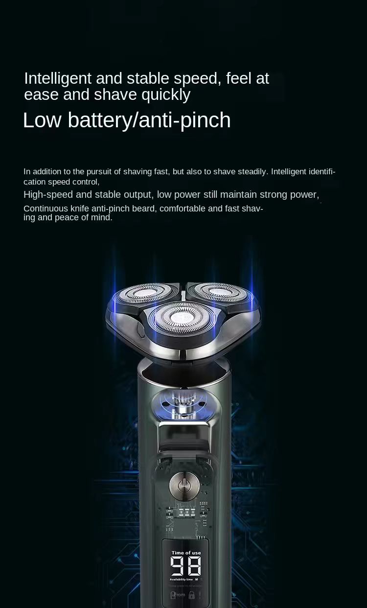 2.Three independent floating heads fit the contours of your face, making it easy to cope with all shaving needs.