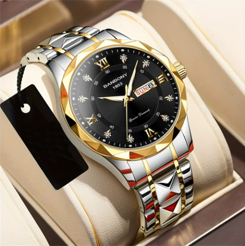 Color: B894 blue surface with gold, B894 white surface with gold, B894 black surface with gold, B894 white surface with silver stripes, B894 black surface with silver stripes, b894 blue surface with silver stripes, B894 black surface with black belt, B894 gold surface with gold strap,