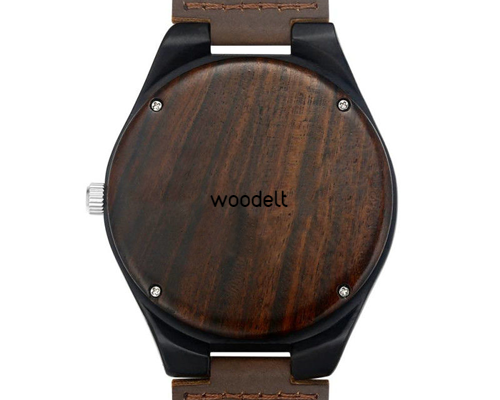 Men's Engraved Wooden Photo Watch Brown Leather Strap
