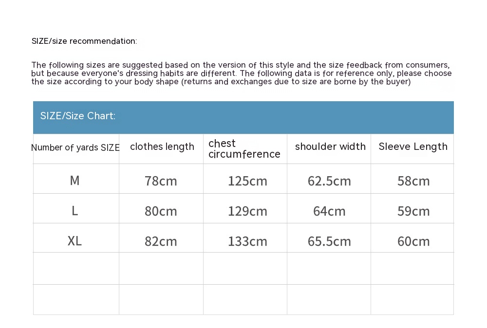 1. Asian sizes are 1 to 2 sizes smaller than European and American people. Choose the larger size if your size between two sizes. Please allow 2-3cm differences due to manual measurement. 2. Please check the size chart carefully before you buy the item, if you don't know how to choose size, please contact our customer service. 3.As you know, the different computers display colors differently, the color of the actual item may vary slightly from the following images.