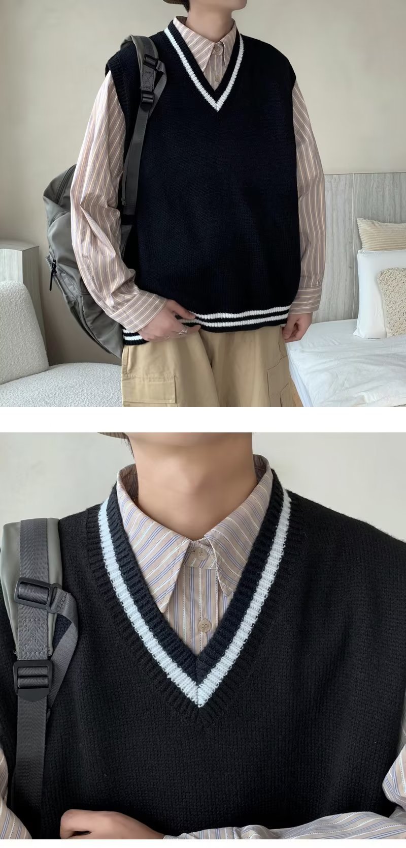 Men's Fall V-neck Vest Sweater Knitwear Top