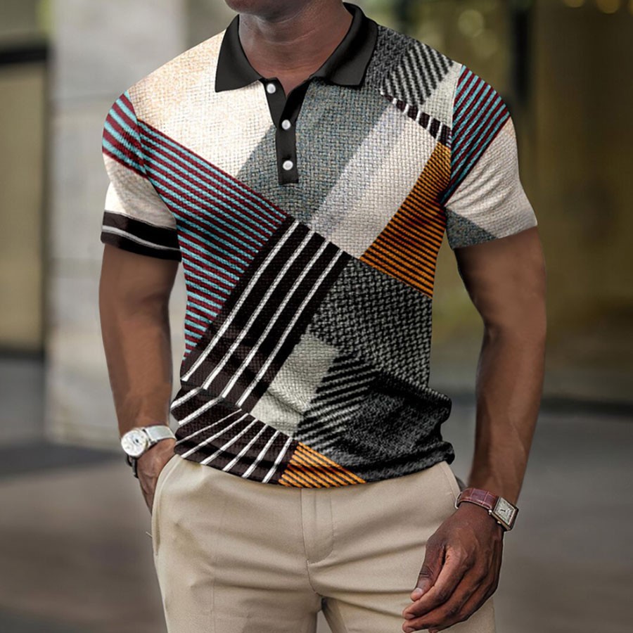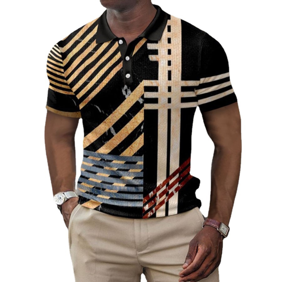 Men's Fashion 3D Digital Printing Lapel Short Sleeve