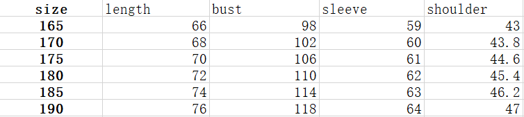 Size: 105/165 recommended 95-115 kg, 110/170 recommended 115-135 kg, 115/175 recommended 135-152 kg, 120/180 recommended 152-170 kg, 125/185 recommended 170-185 kg, 130/190 Recommended 185-200 kg
