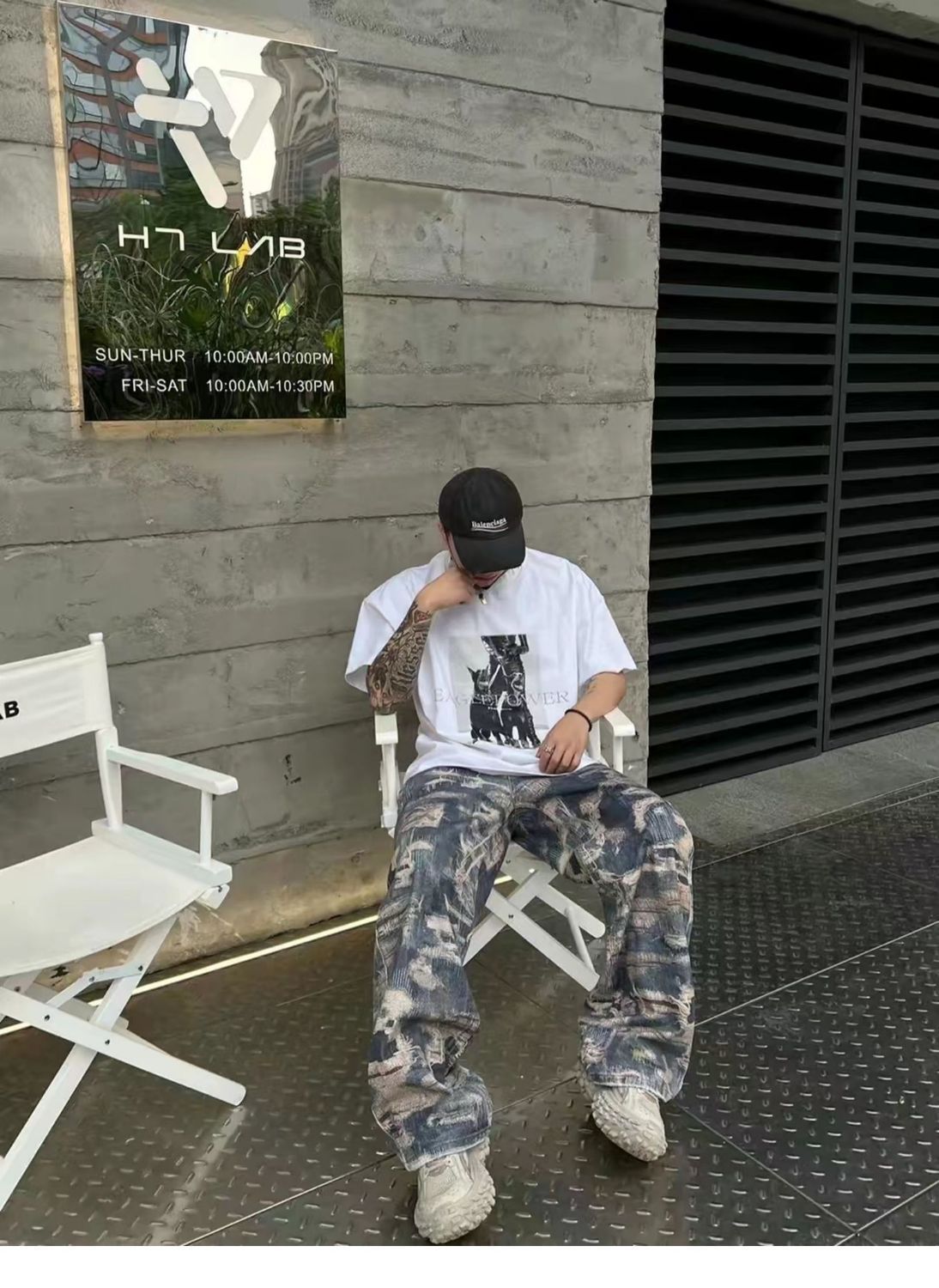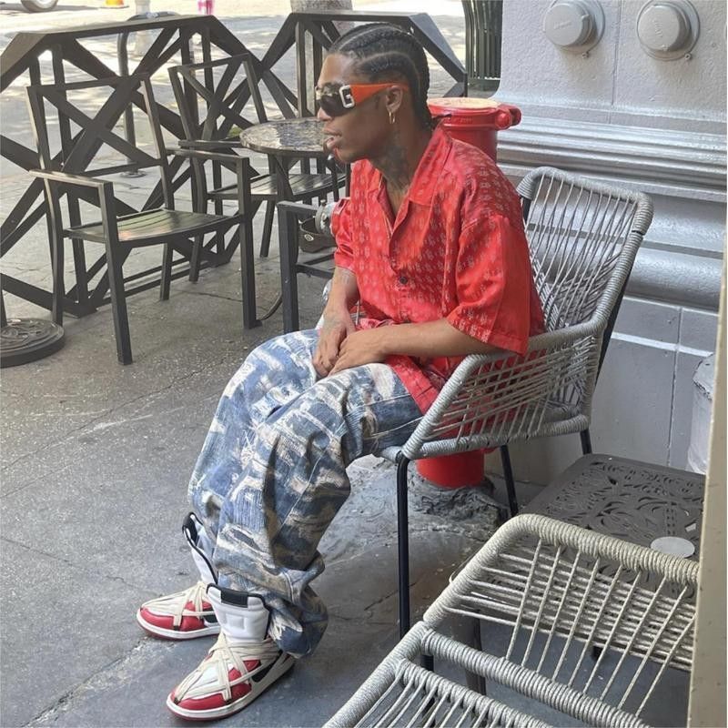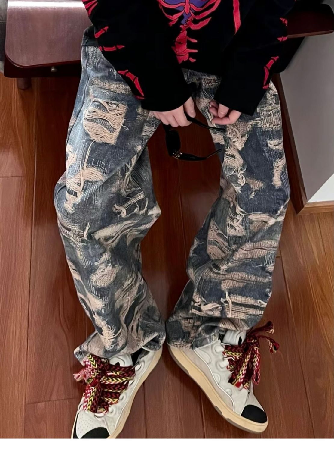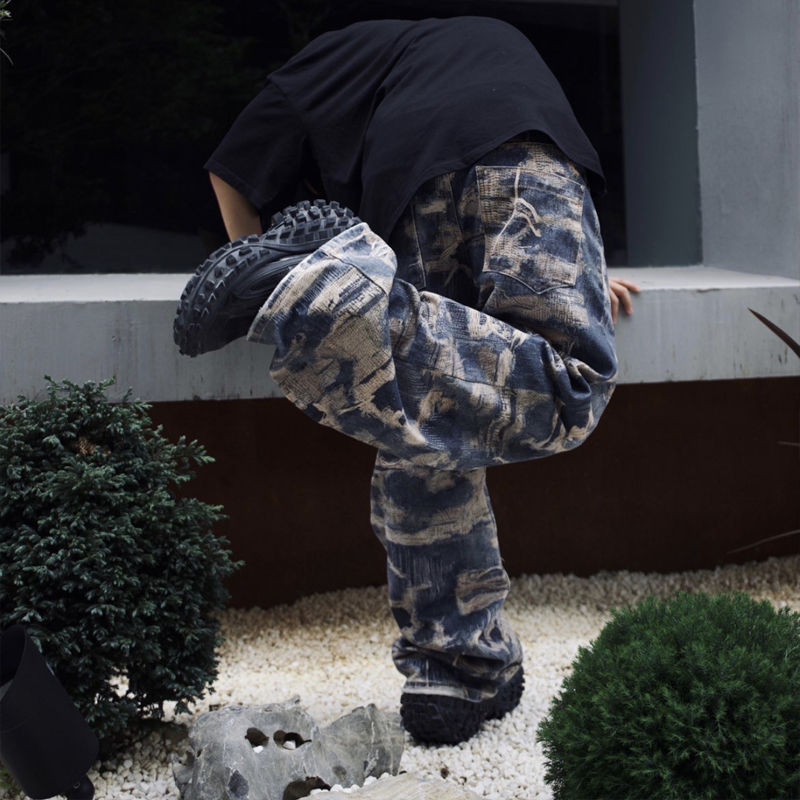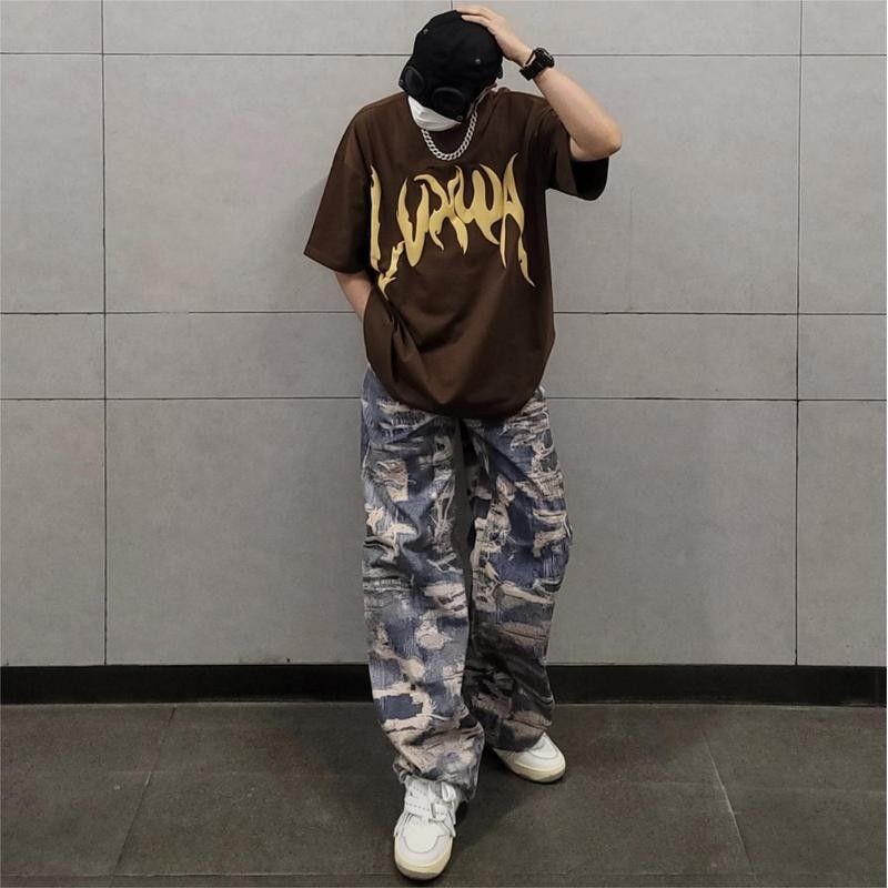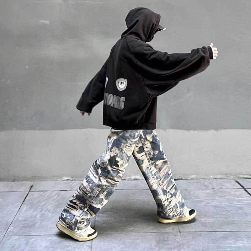 Men's Fashion Casual Digital Printing Hole Worn Jeans