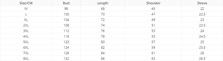 Size: M,L,XL,XXL,3XL,4XL,5XL,6XL,7XL,8XL
