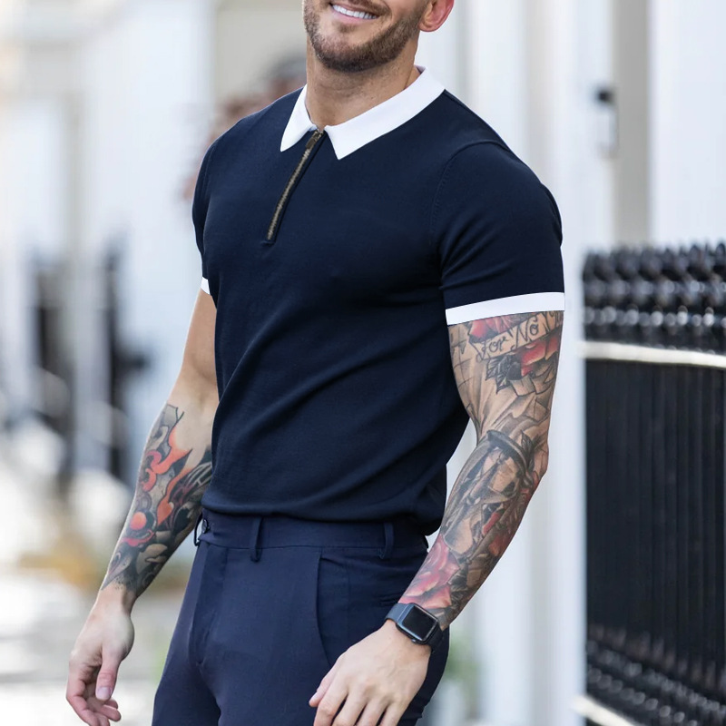 Men's Fashion Casual Patchwork Contrast Color Polo Shirt Short Sleeve