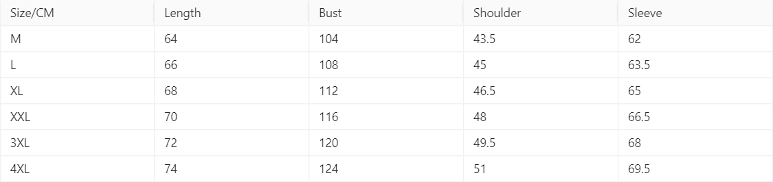 Size: M, L, XL,XXL,XXL,XXXXL