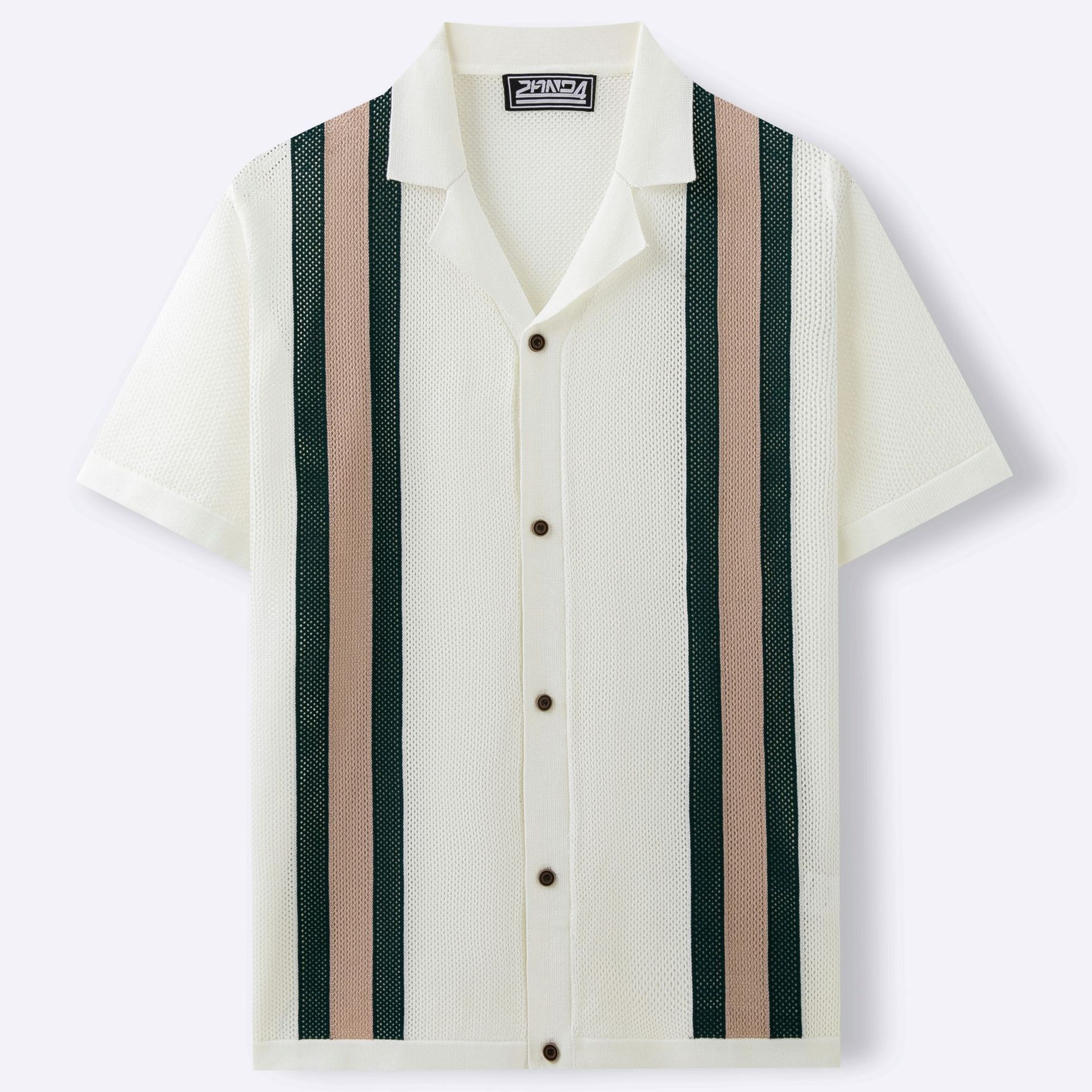 Men's Fashion Cuban Collar Short Sleeve Knitted Cardigan