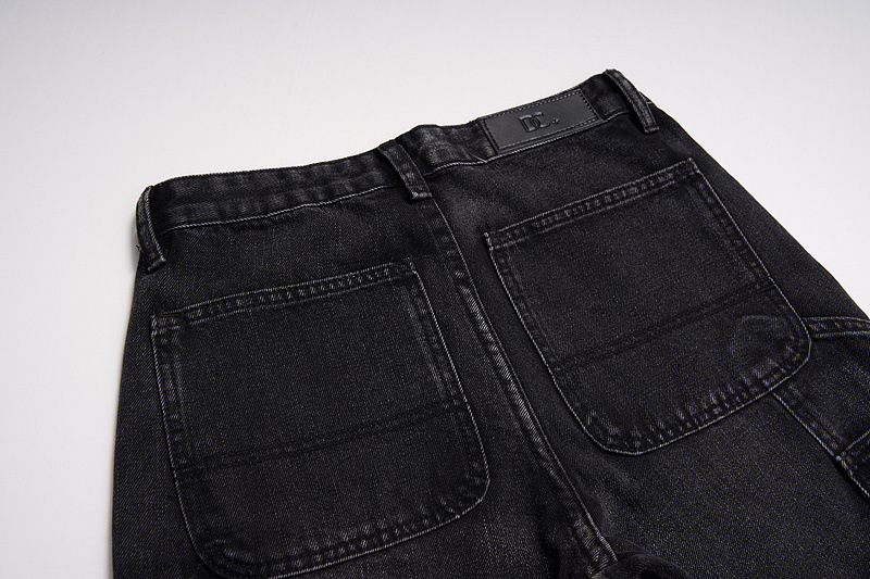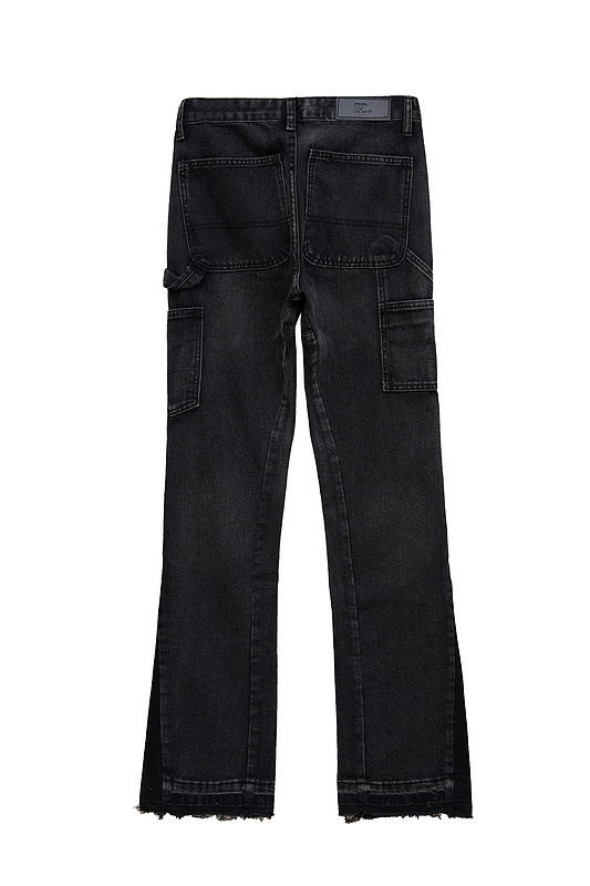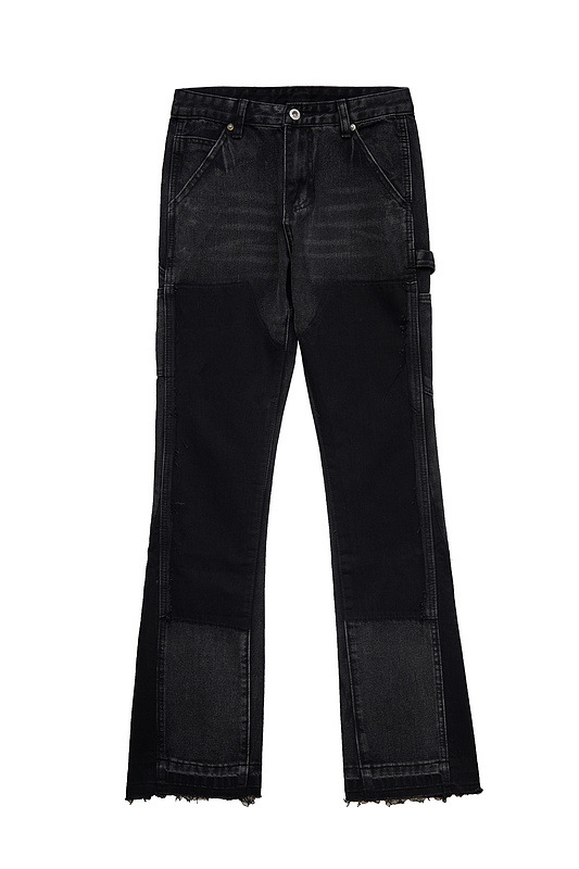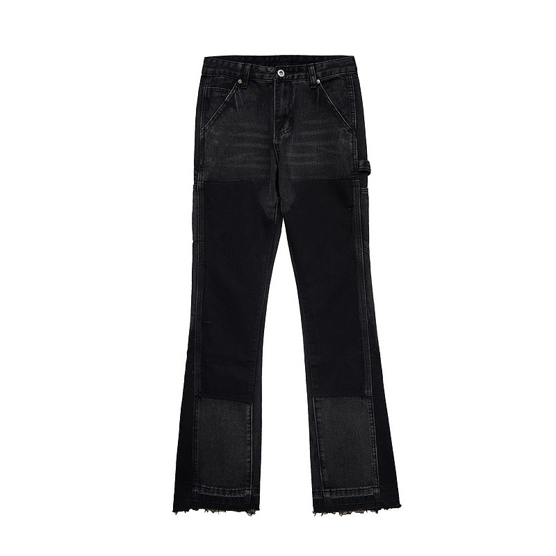 Men's Fashion High Street Stitching Deconstruction Retro Black Slightly Flared Loose Jeans