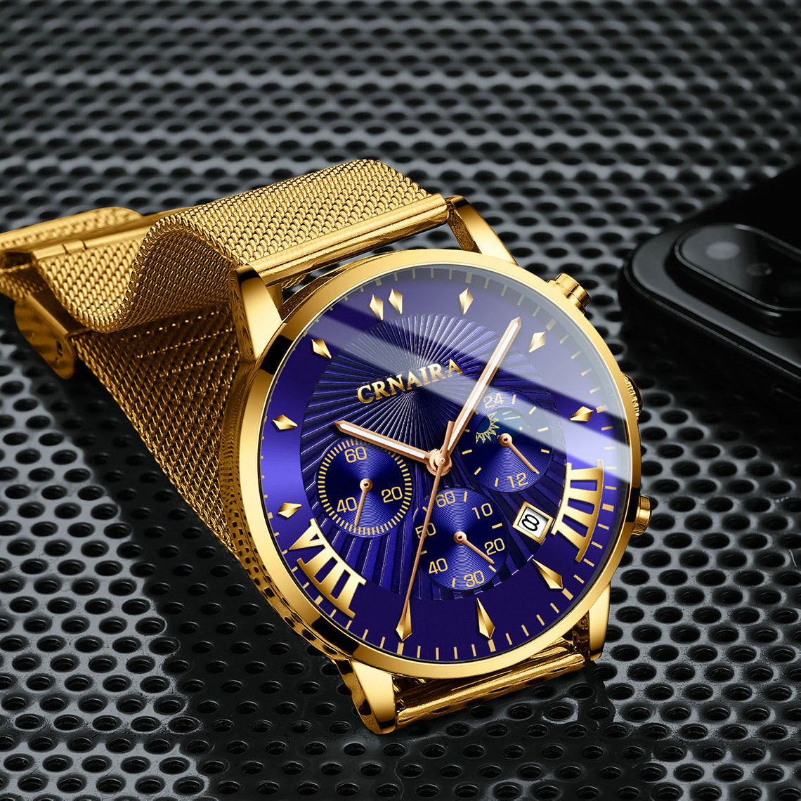Color: gold shell blue surface gold mesh belt, black cover black surface black mesh belt, black cover blue surface black mesh belt, silver shell black surface silver mesh belt, Silver Shell white surface silver mesh belt, black cover blue surface black belt, black cover black surface black belt