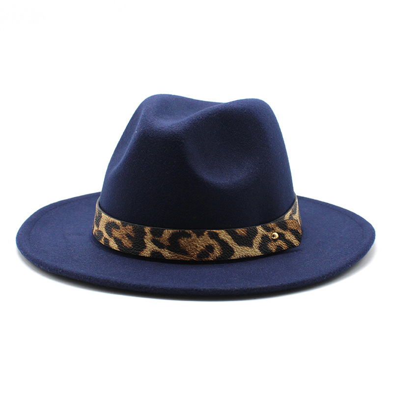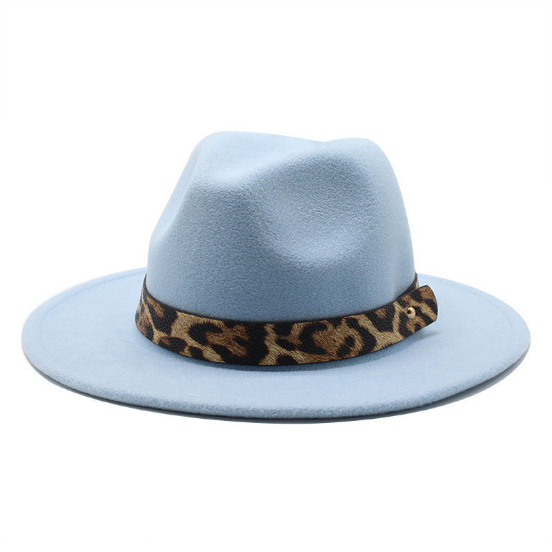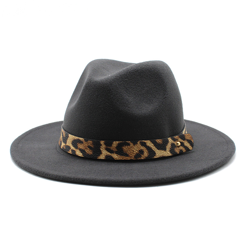 Men's Fashion Leopard Print Woolen Big Brim Top Hat