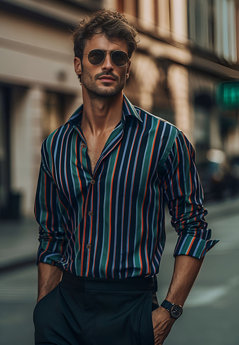 Men's Fashion Long Sleeve Striped Printed Shirt