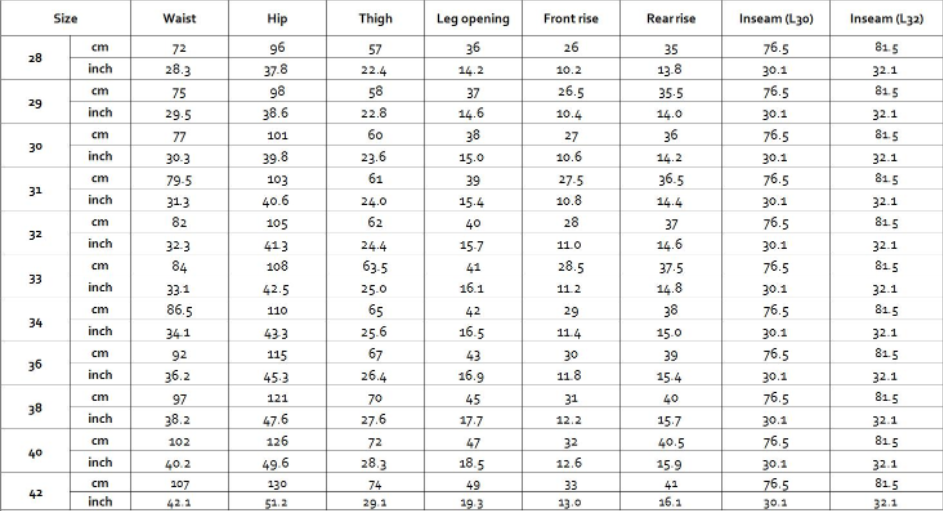 Size: W27L30 W27L32 W28L30 W28L32