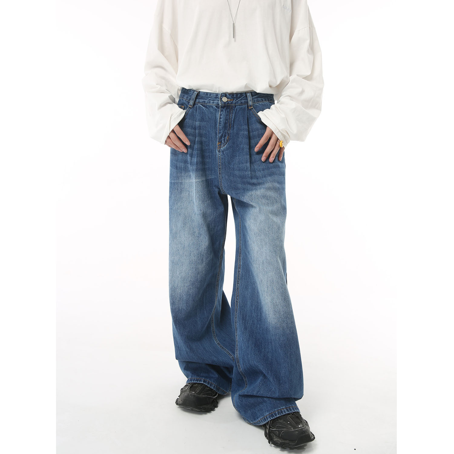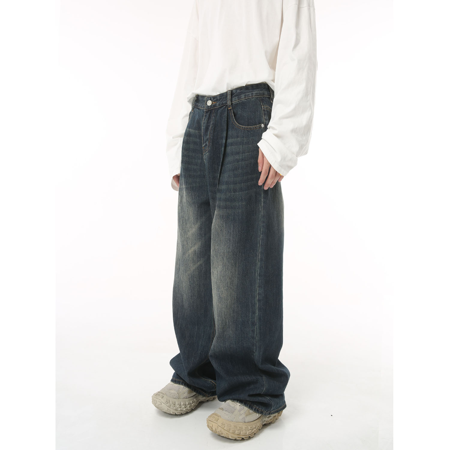 Color: blue, distressed, black and gray