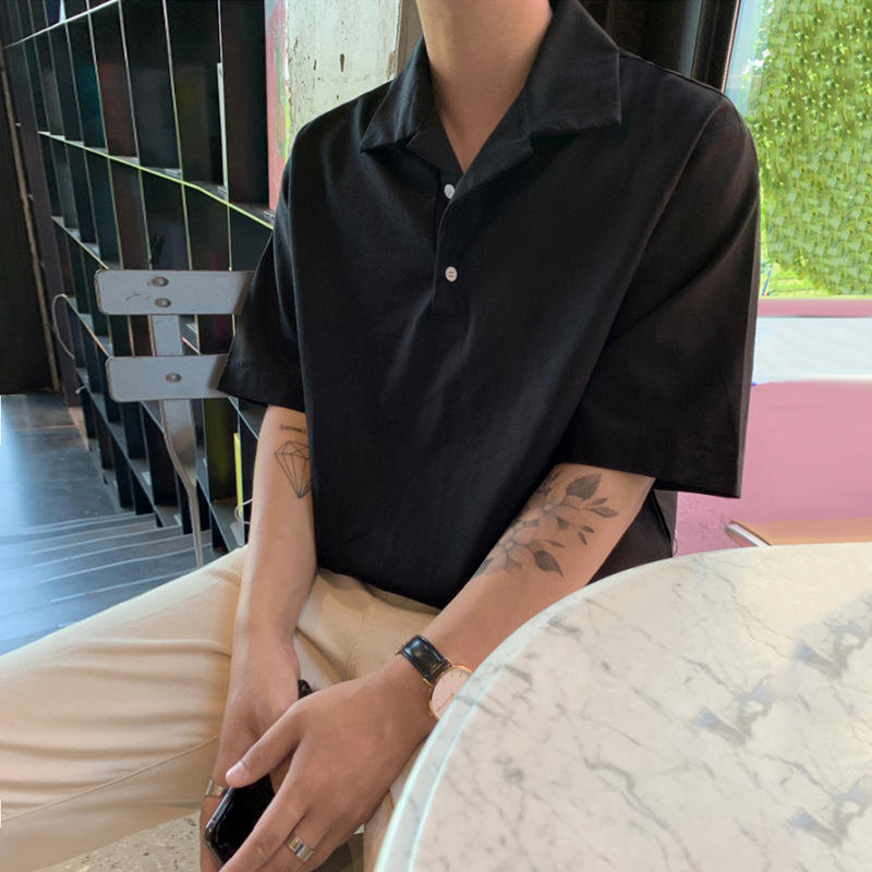 Men's Fashion Simple Solid Color Short Sleeve Shirt