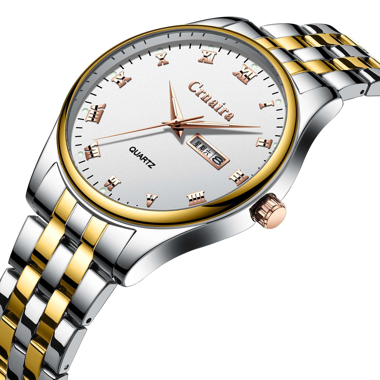 Color: gold strap between gold and black, gold strap between gold and white, silver case black steel belt, silver case white steel belt